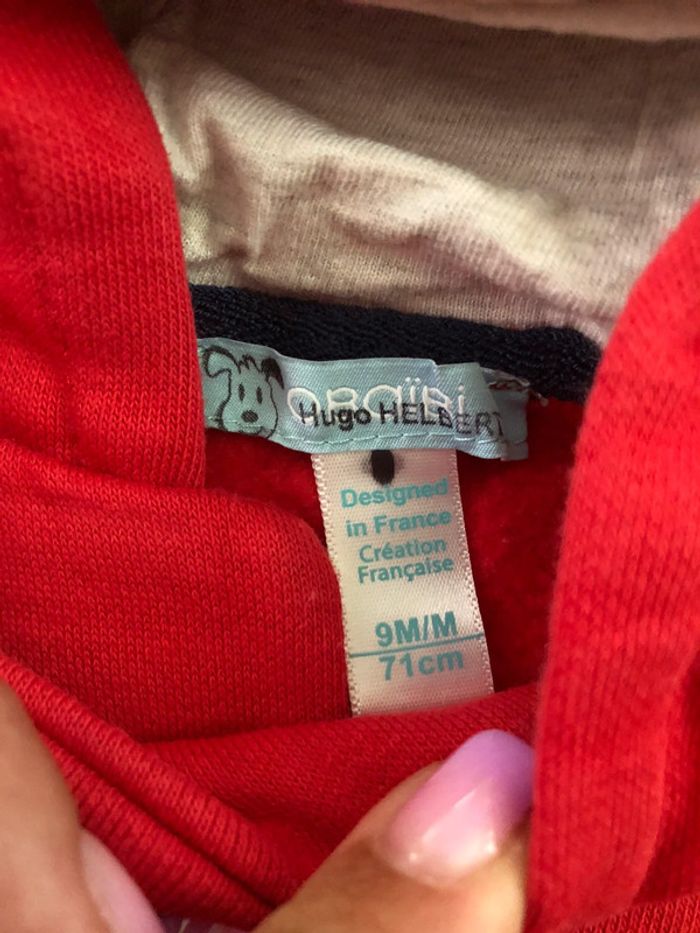 Pull chaud à capuche Obaïbi Taille 9 mois en très bon état avec pressions devant pour faciliter le passage de la tête.