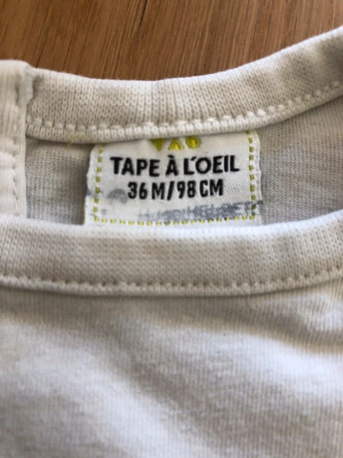 Tee-shirts Tape à l’œil Taille 36 mois en très bon état. Pressions dans le dos pour faciliter le passage de la tête.