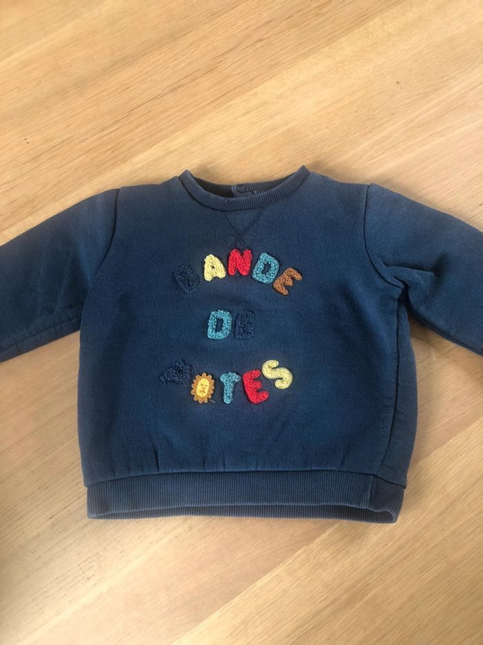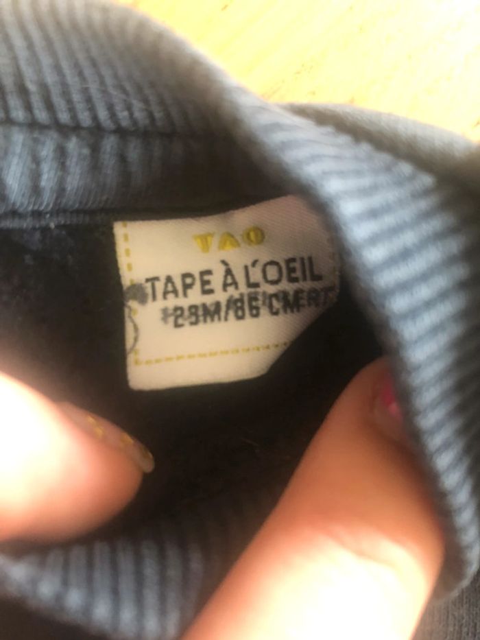 Pull chaud bleu marine Tape à l’œil Taille 23 mois en très bon état. Pressions à l’arrière pour un meilleur passage de la tête