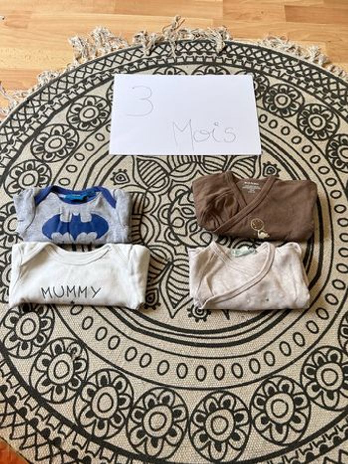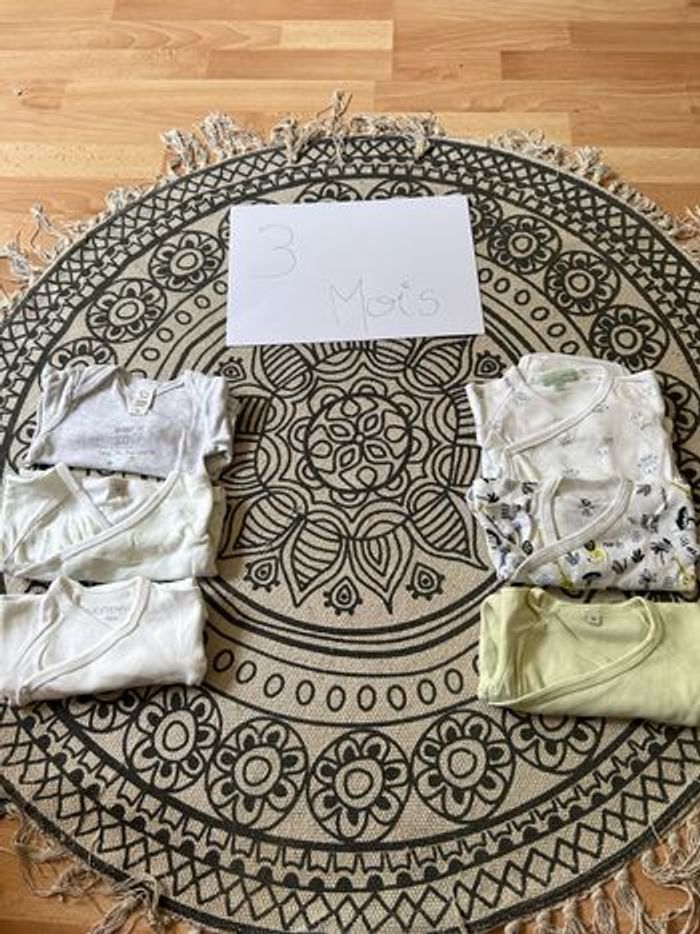 Lot de 10 body manche longue Mixte , 7 body portefeuille et 3 body à enfiler En très bon état Taille 3 mois Plusieurs marque gemo, kiabi, les petits cailloux etc..