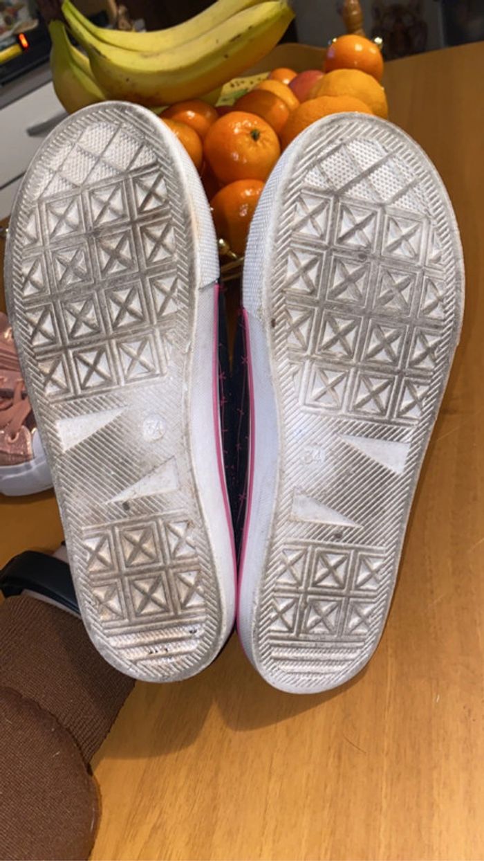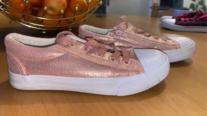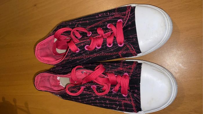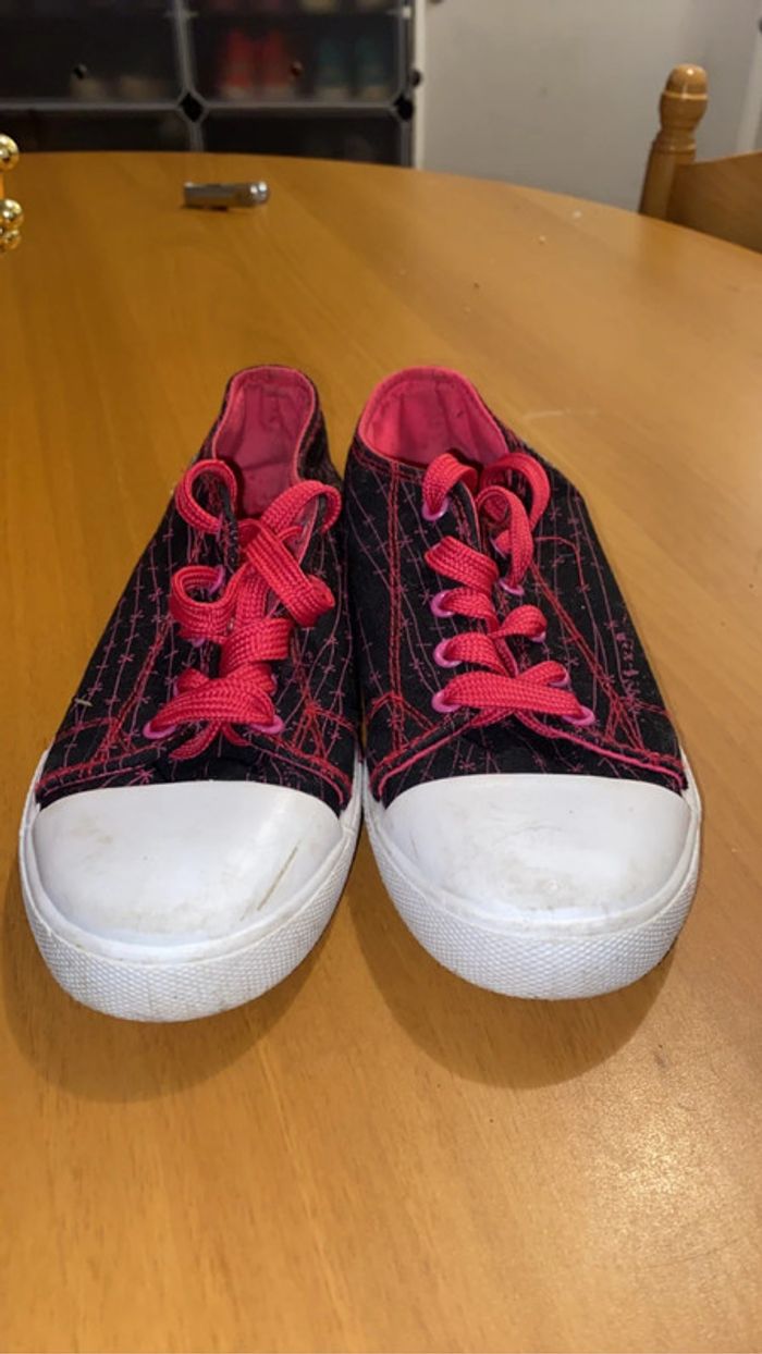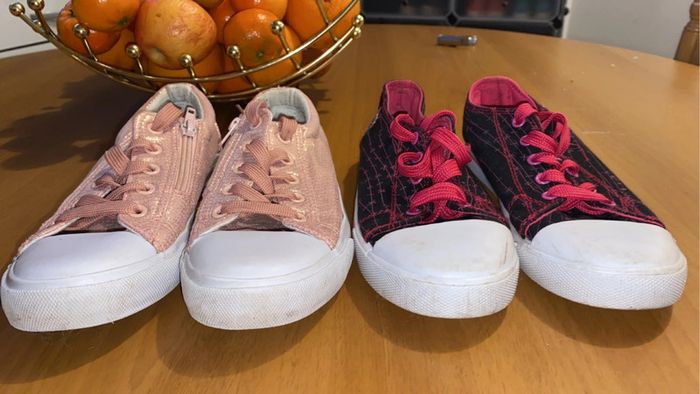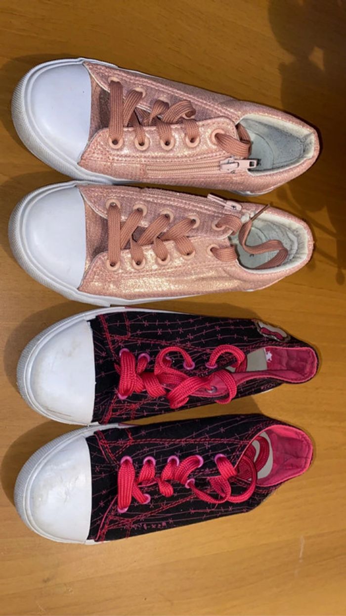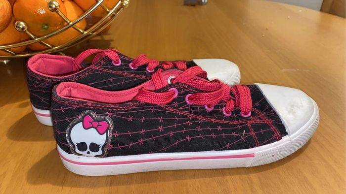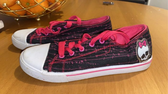je vend 2 paires de chaussures. (possibilité de faire un lot) - une paires rose / beige brillant : état quasiment neuf. - une paire monster high : état très bon (contient de légères traces d’usures). 📏 : les 2 paires : taille 34. 🏷️ : - 10€ la rose / beige. - 8€ la monster high. - 15€ le lot.