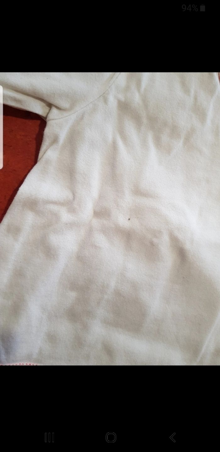 Joli t.shirt manches longues avec motif à l avant. Malheureusement petite tache à l arrière