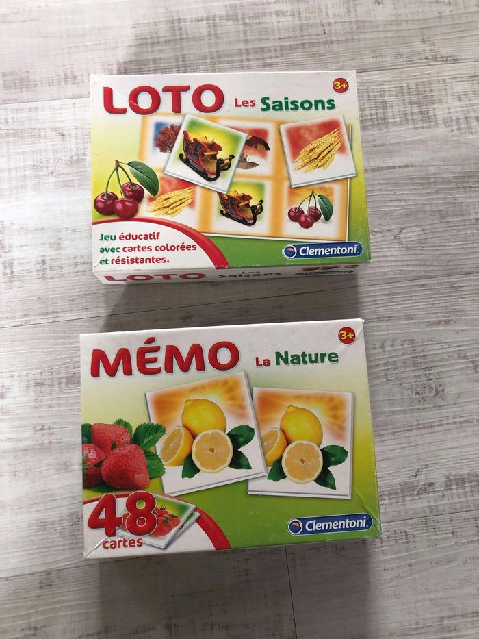 Vend jeu éducatif - un jeu mémo sur la nature. 48 cartes - un jeu loto sur les saisons 24 cartes et 4grilles . Jeux complets de la marque clementoni. 8€ le lot des deux jeux