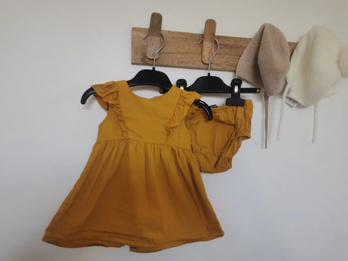 #robe #moutarde #bloomer #kiabi #3mois #bébé #fille #becosyhome_fille_troismois