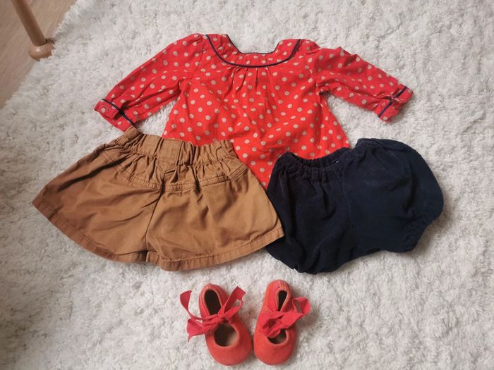 Lot vêtements (blouse + un short + un bloomer + une paire de chaussure) - photo numéro 1