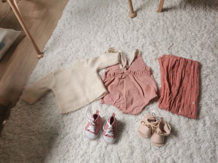 Ensemble barboteuse + gilet + foulard + 2 paires de chaussures - photo numéro 1