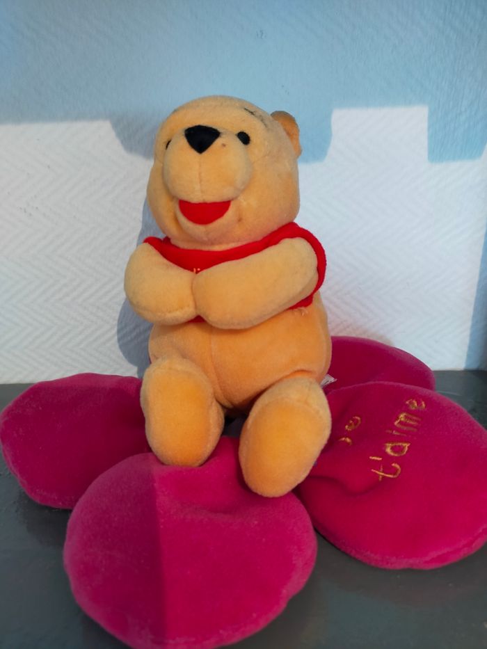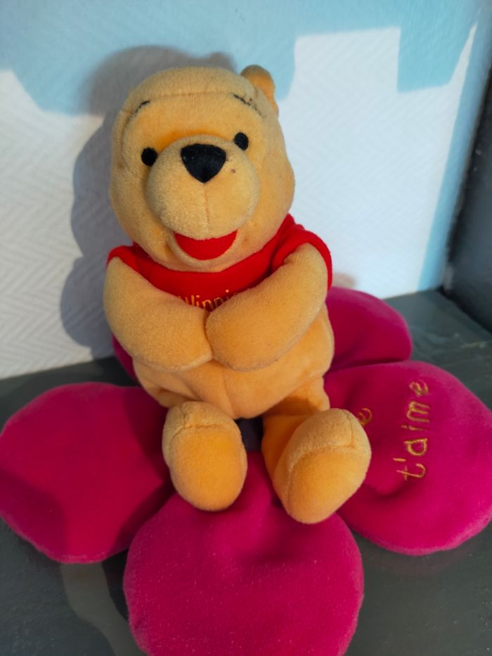 Peluche Winnie l'ourson sur fleur "Je t'aime"