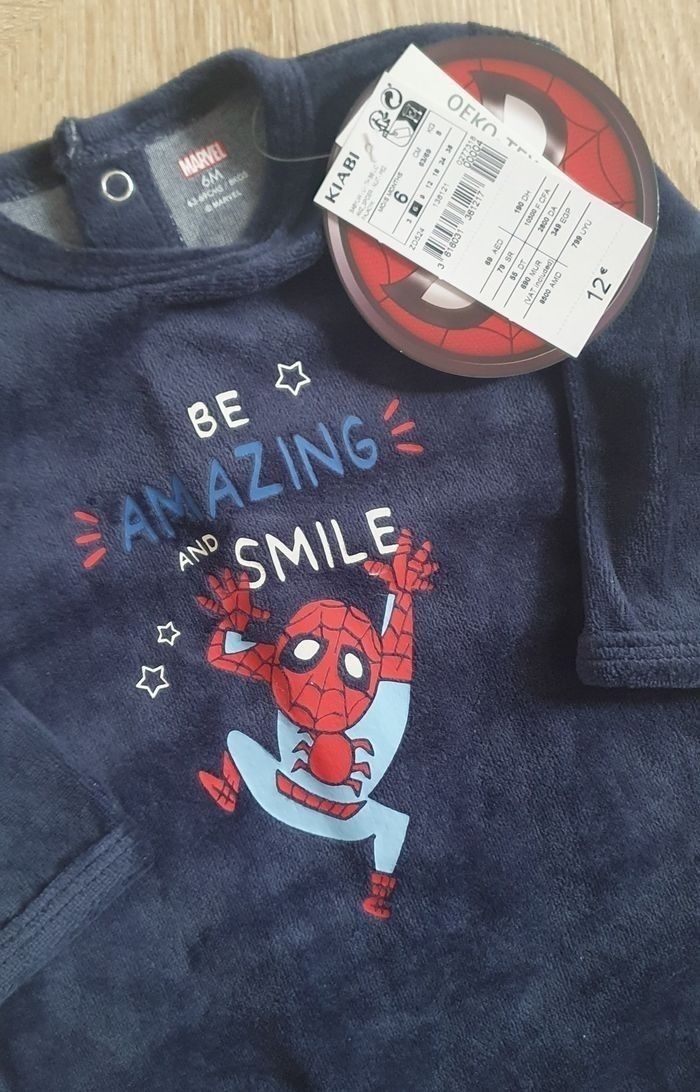 Pyjama bleu Marvel Spiderman Kiabi Taille 6 mois Neuf Possibilité de faire un lot des 3 pyjamas neufs '' Simba + Spiderman + Jurassic World '' pour 24€ au lieu de 27€
