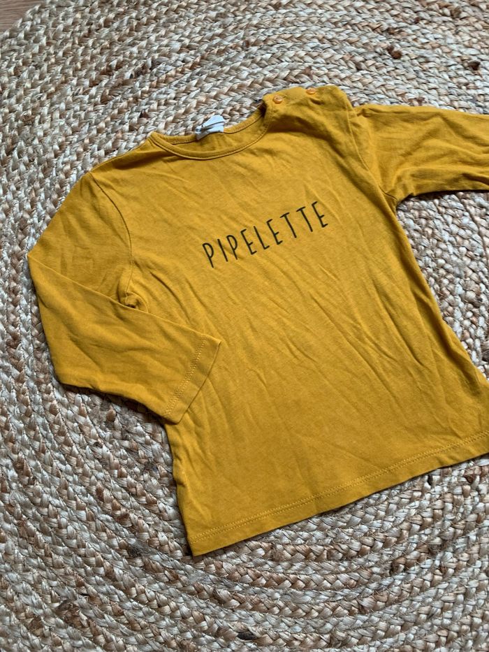 T-shirt manches longues Marque kiabi Taille 24 mois Tache de stylo sur la manche #tshirt #tshirtmancheslongues #kiabi #moutarde #24mois #vetementsnaya24mois