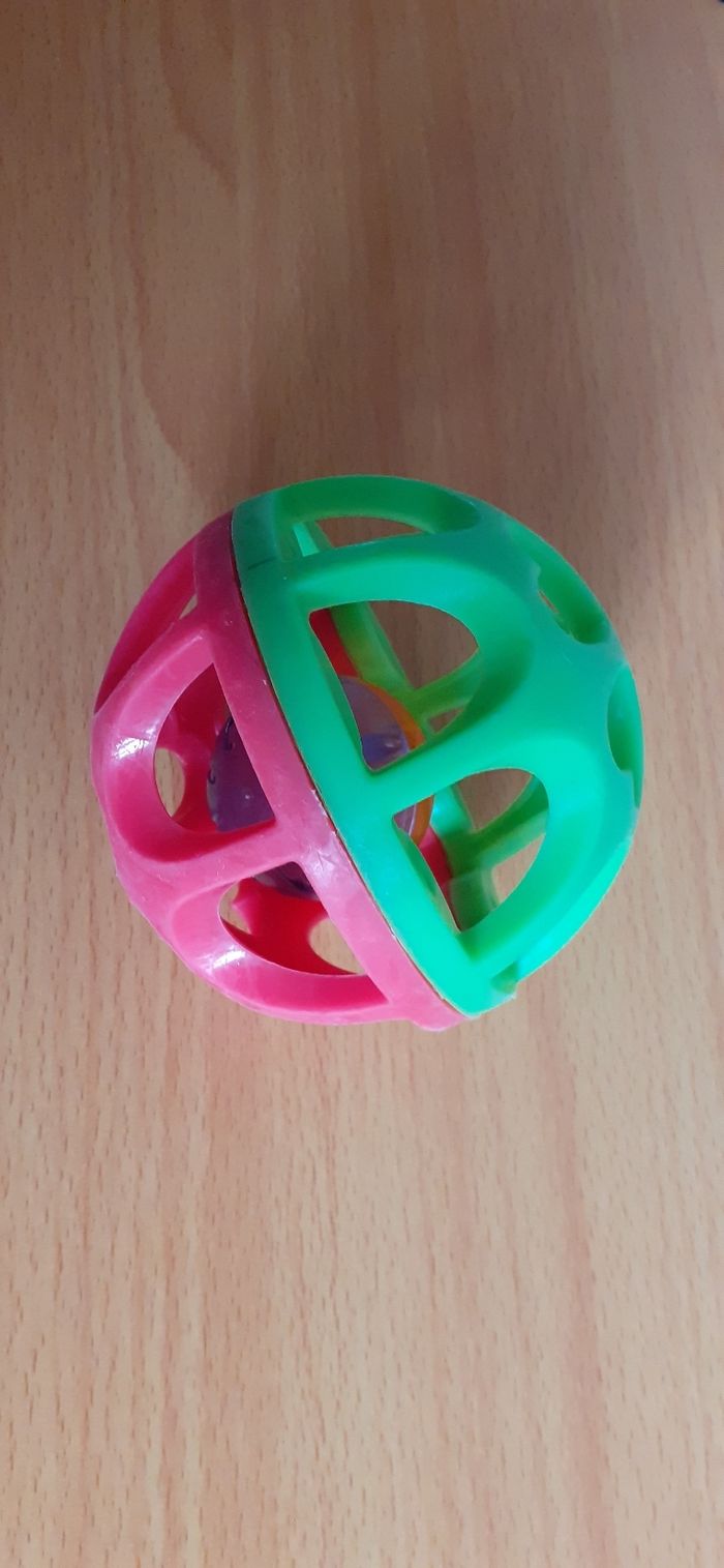 Vends un hochet en plastique un peu souple avec une boule et un grelot qui fait du bruit à l intérieur