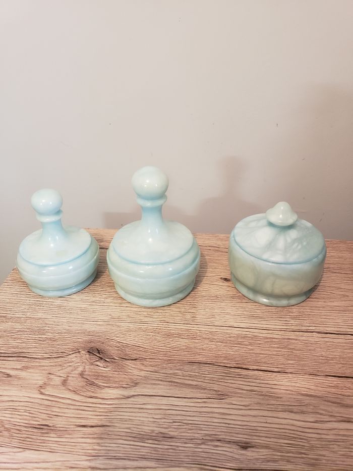 ensemble de 3 pots nécessaire salle de bain en albatre