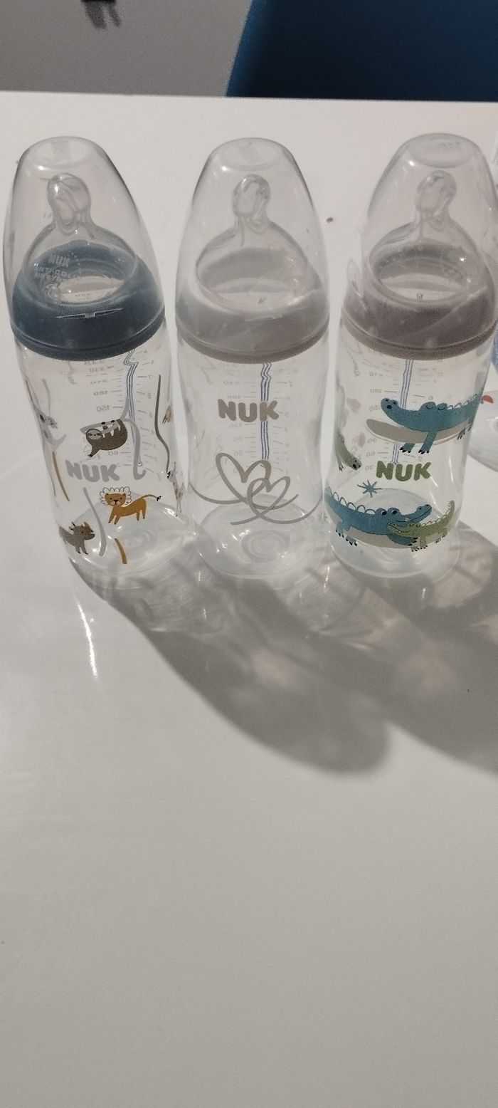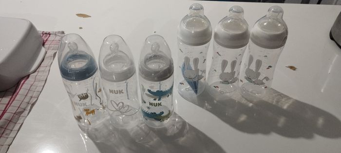 3 biberons NuK utilisés une seule fois e 3 biberons alvar (marque action) jamais utilisé juste stérilisé une fois et un autre complément neuf avec l'étiquette à l'intérieur du biberon