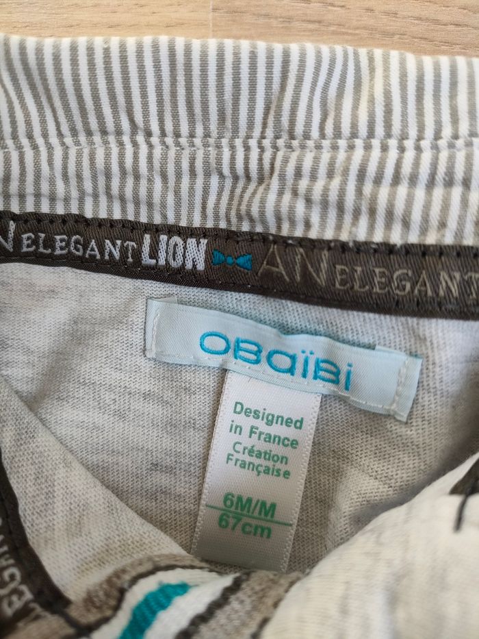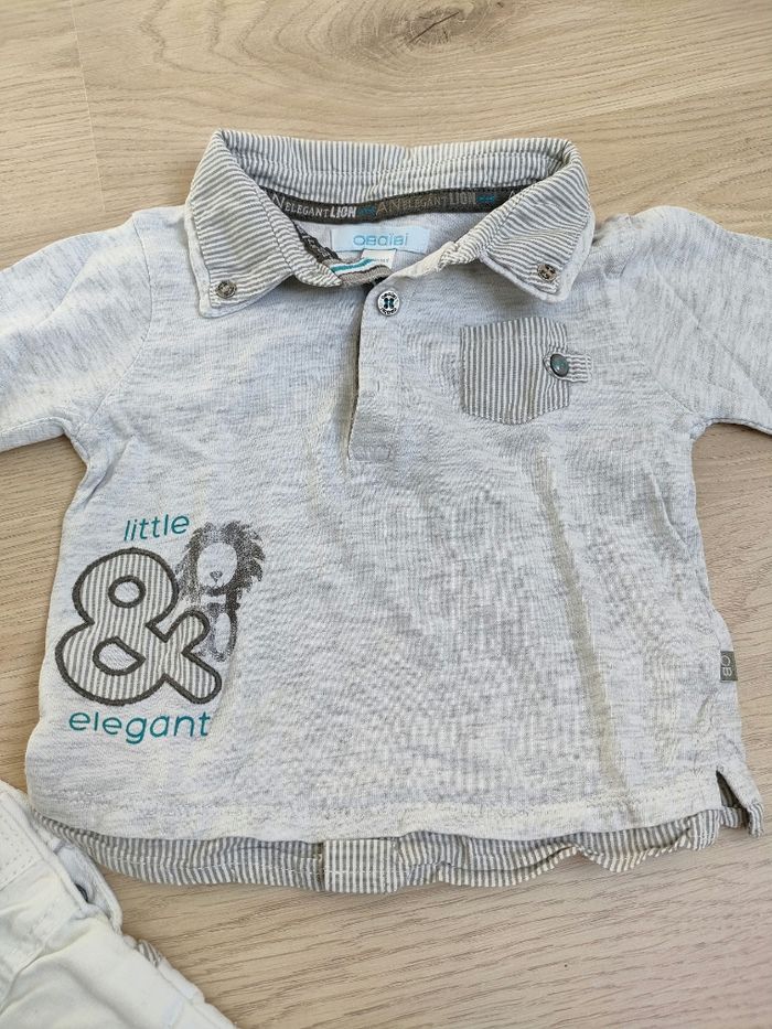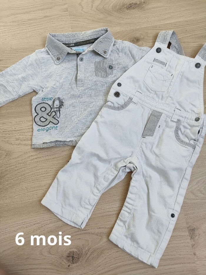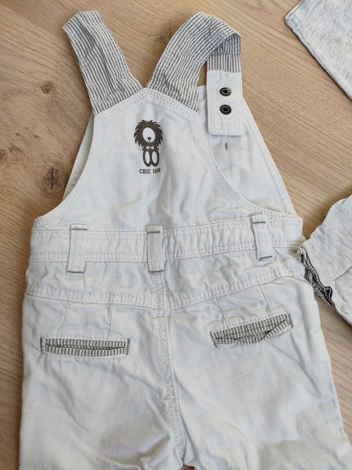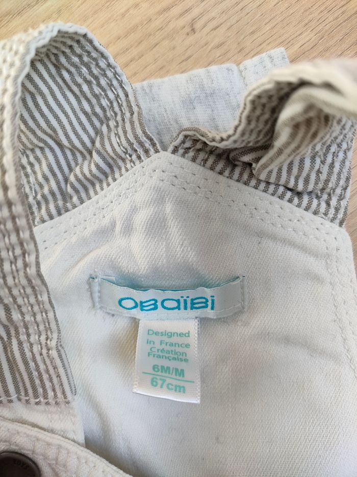 Ensemble Salopette blanche + polo gris chiné Obaibi 6 mois Très bon état