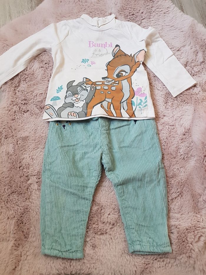 Ensemble fille 12 mois Pantalon velours in extenso et haut manches longues Disney baby Porté deux fois