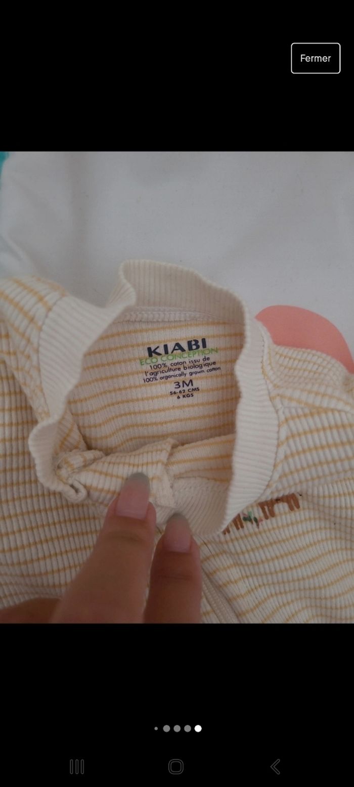 Lot de 6 barboteuses toutes marques (Kiabi, Z, TeX, Orchestra, 3Pommes) taille 3mois. Barboteuse blanche, taché au niveau du col