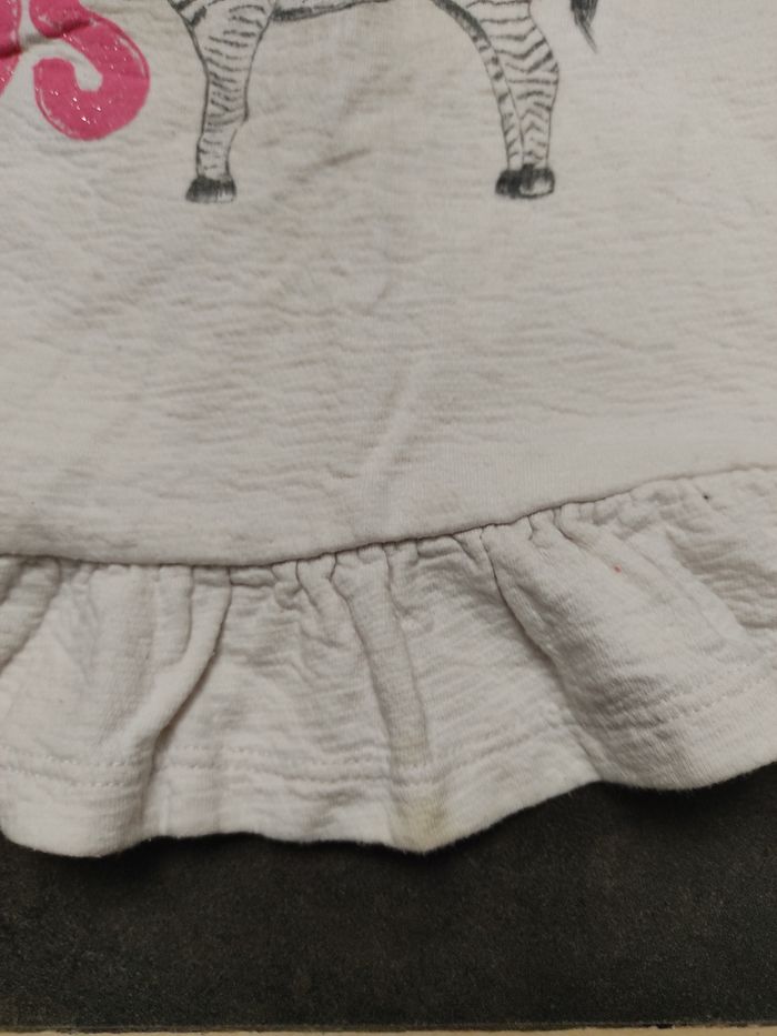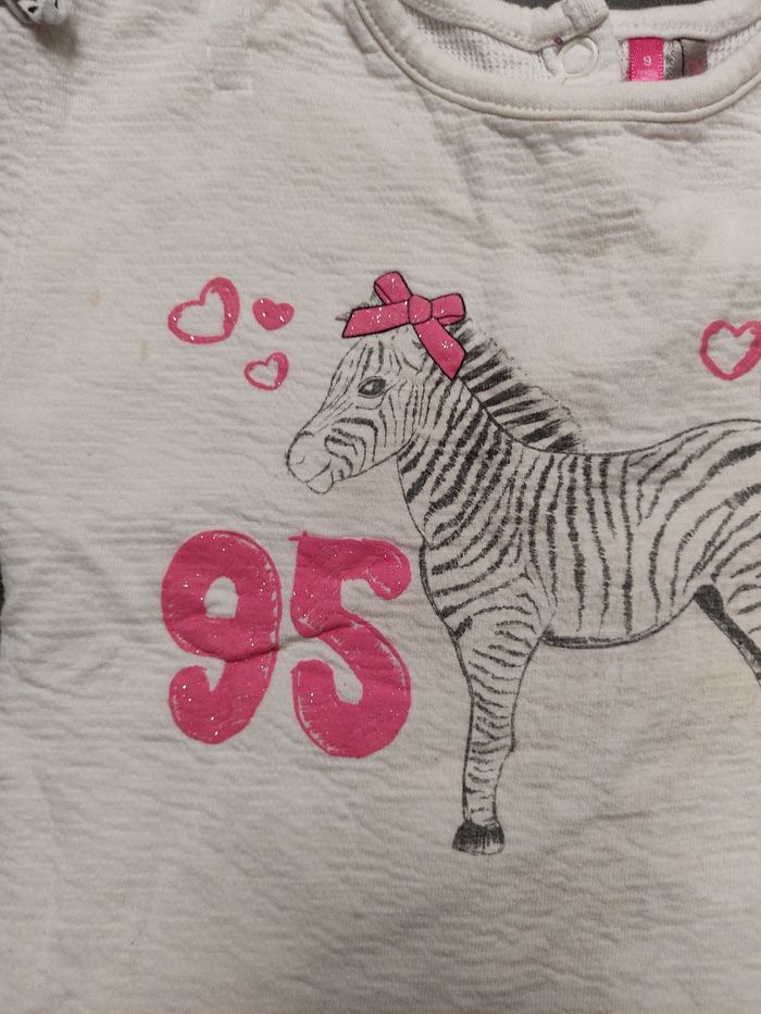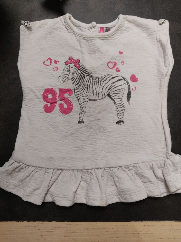 Robe pour bébé fille de 9 mois ou 71cm. Motif zèbre avec coeur. Au dos 3 pressions pour faciliter l enfilage. Un peu tachée