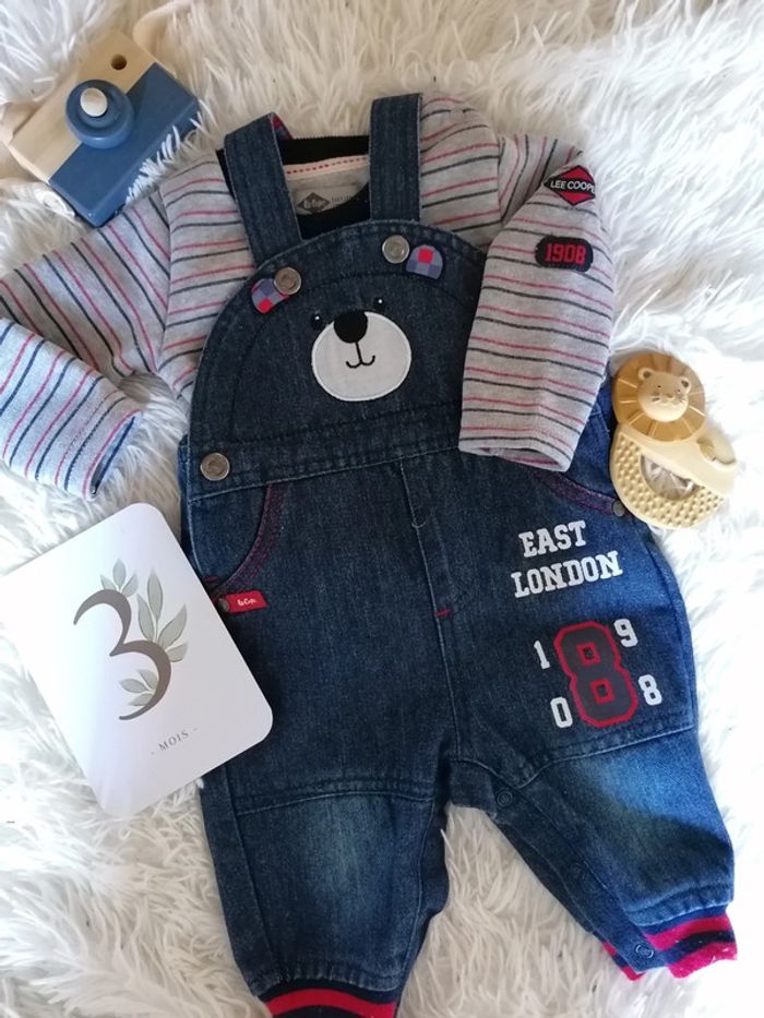 Salopette en jean + haut manches longues intérieur polaire. En très bon état 🌟 taille 3 mois 📏