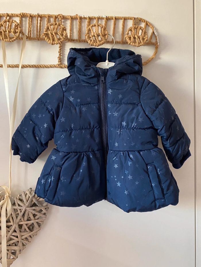 Doudoune bleu marine avec petites étoiles ton sur ton 3 mois 62 cm Marque kimadi