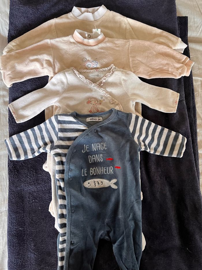 Lot de 4 pyjamas taille 3 mois. Différentes marques, différents modèles.