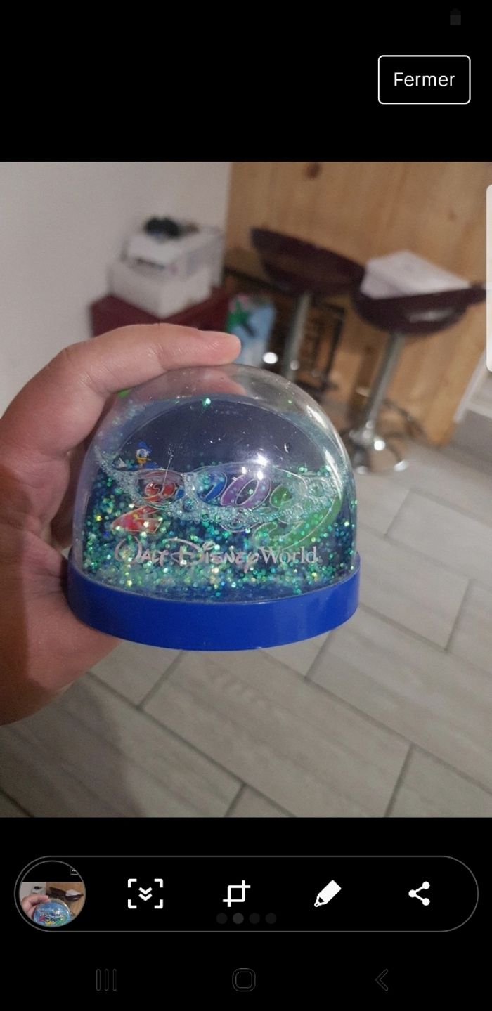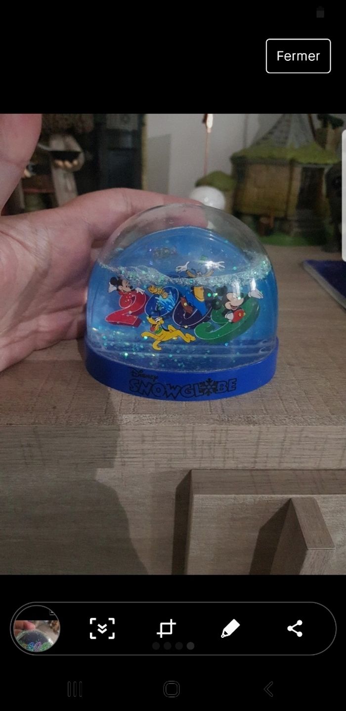 Boule disney avec Mickey et ses amis Prévoir de rajouter du liquide car il n arrive pas en haut Annee 2009 C'est en plastique dur
