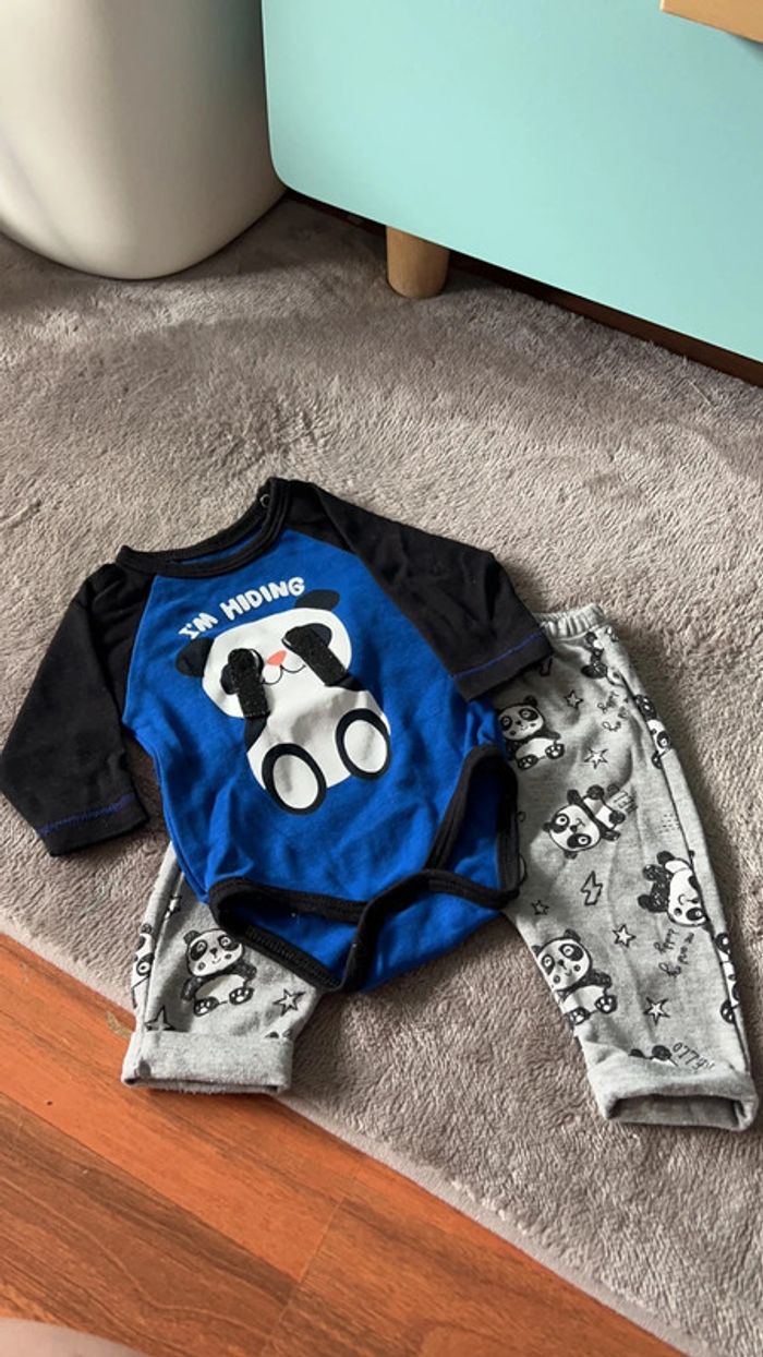 Ensemble bodie+ legging panda en très bon état. Taille 0-3mois