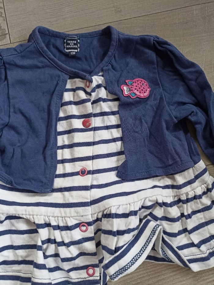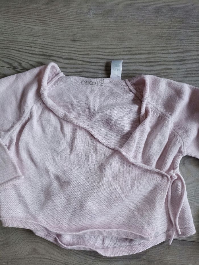 Lot de deux gilet un cache coeur rose et un style marin bleu marine et a rayures. Idéal pour la mi saison. Marque obaibi et terre de marin