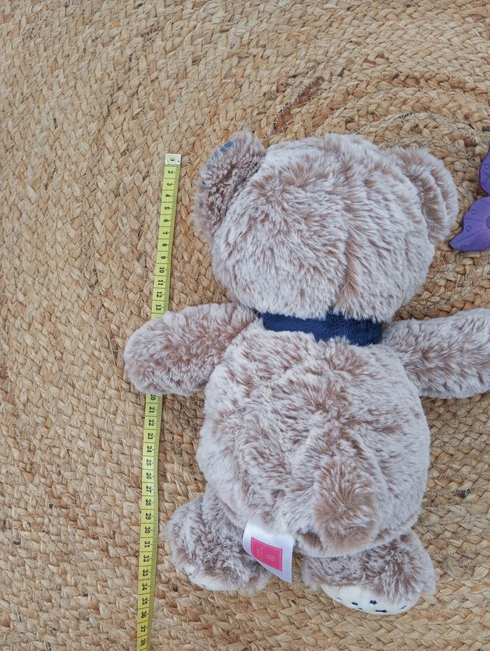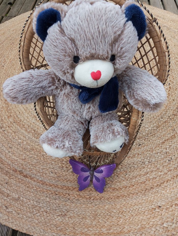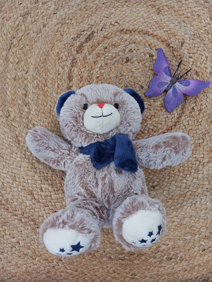 #DCR_divers #DCR_ours Françoise saget Peluche ours Marron et bleu Broderies étoiles Écharpe C006