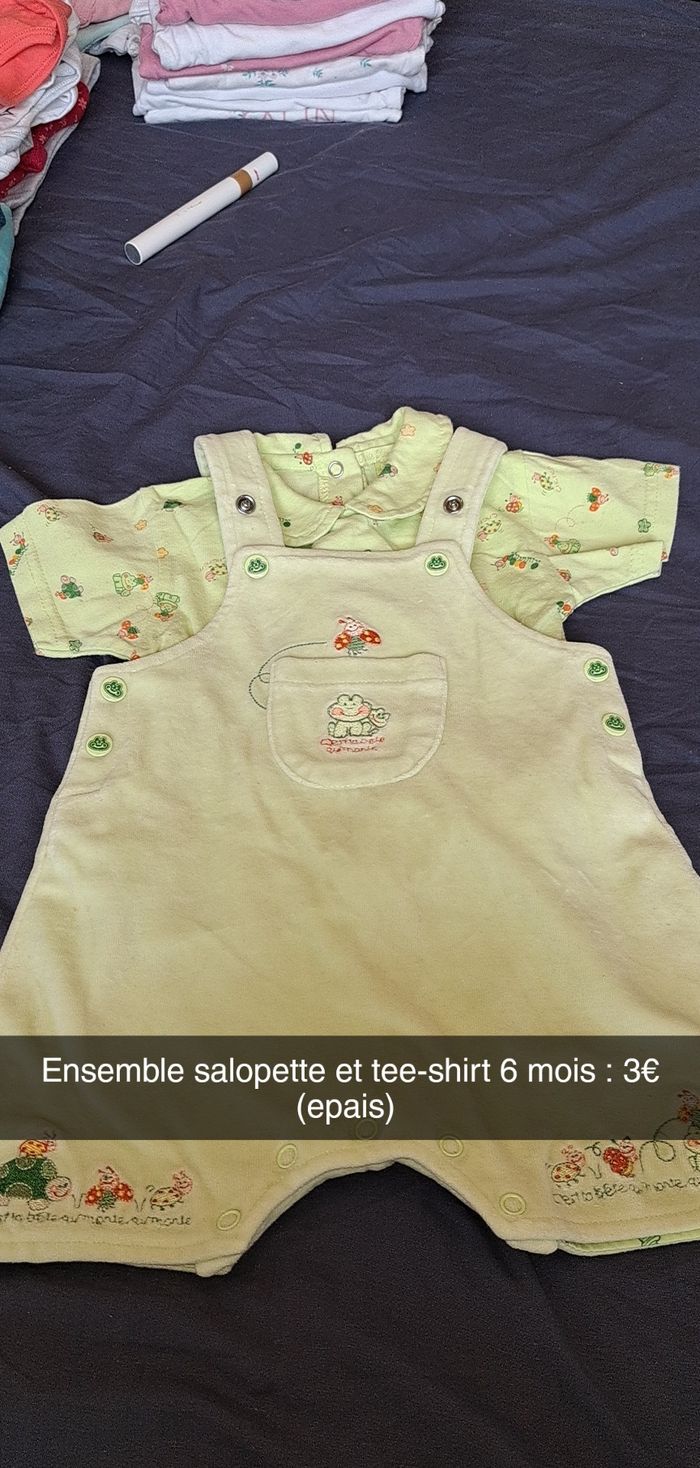 ensemble salopette tee shirt 6 mois, jamais porter