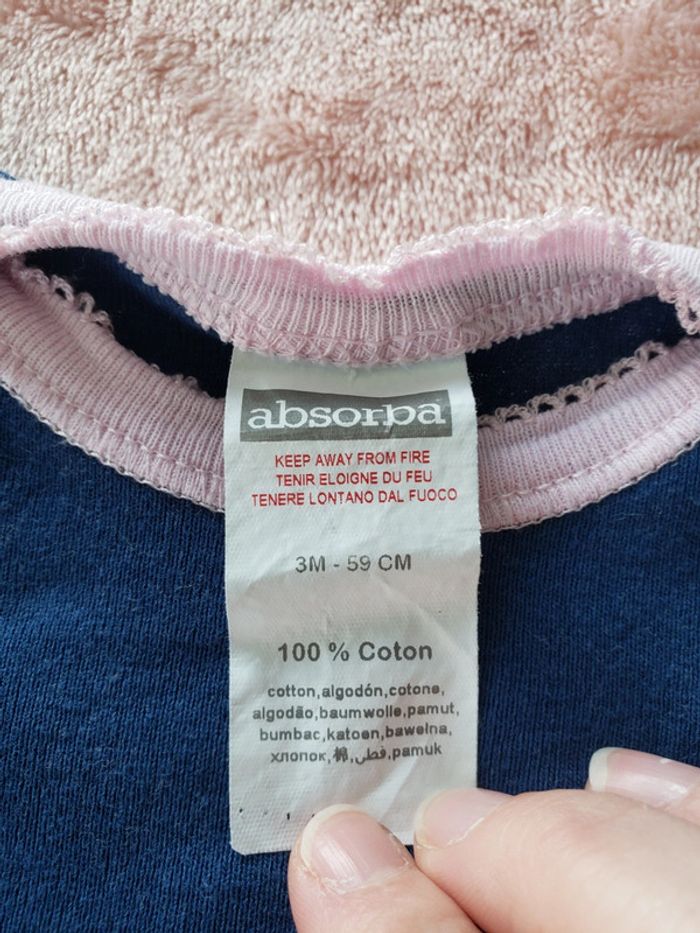 En très bon état, Taille : 3 mois Marque : absorba Couleur : rose et bleu marine