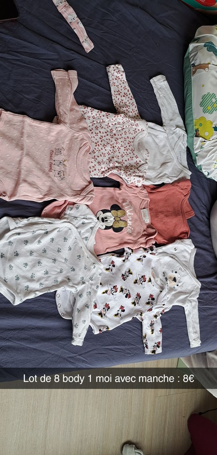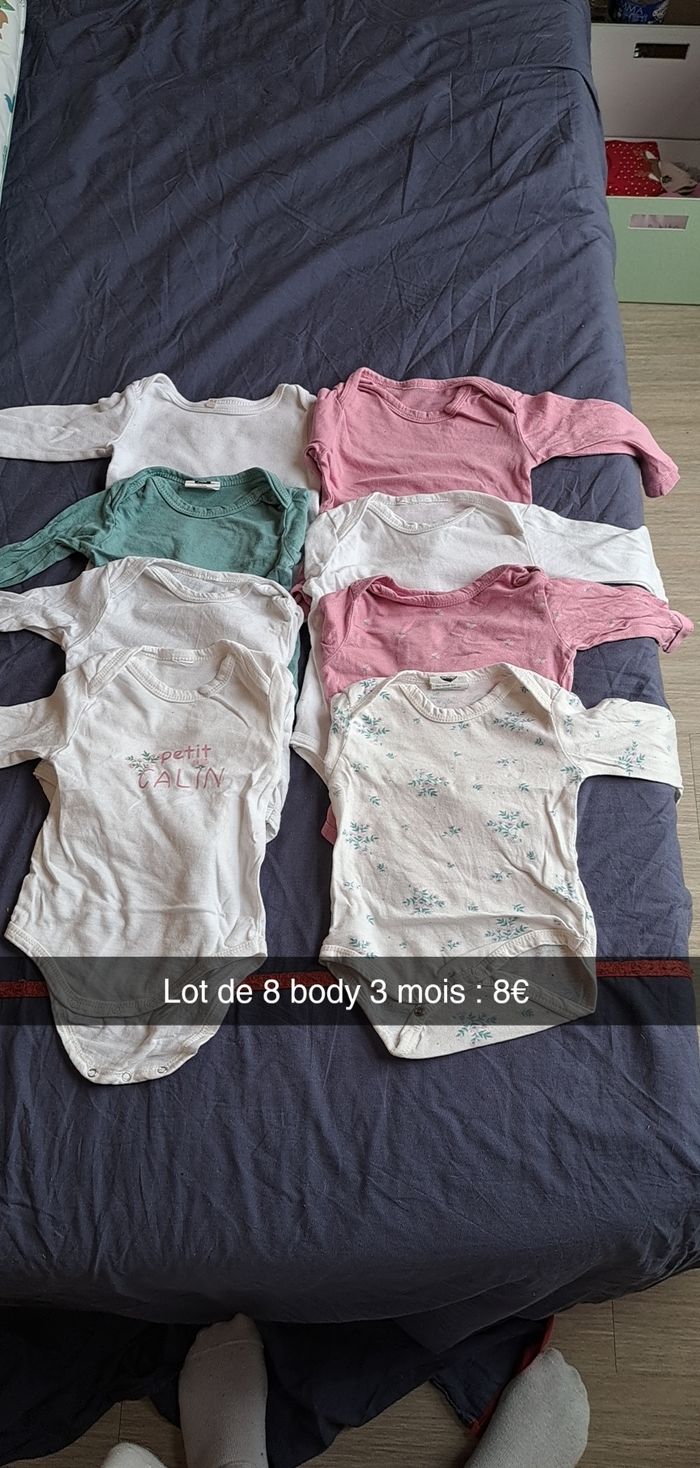 lot de body 8 body de 1 mois 15 body de 3 mois Marque : Kiabi, Auchan, Action, Leclerc