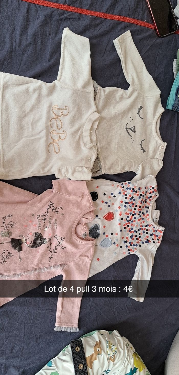 lot de 3 pull 3 mois lot de 2 tee shirt manche longues 3 mois lot de 4 pull 3 mois plusieurs marque