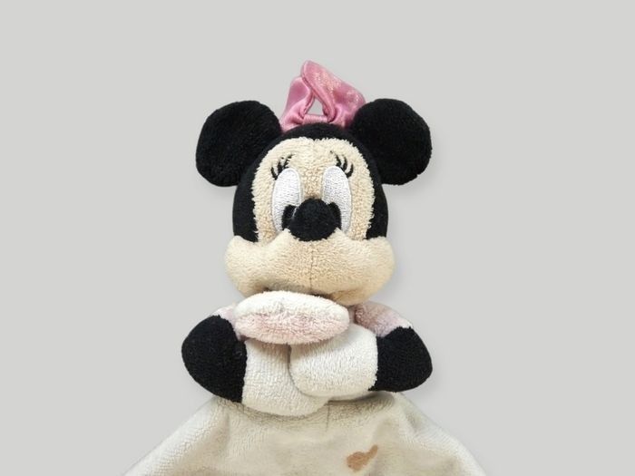 Doudou souris Minnie carré plat velours rose noir cœurs Disney 33 cm - photo numéro 6