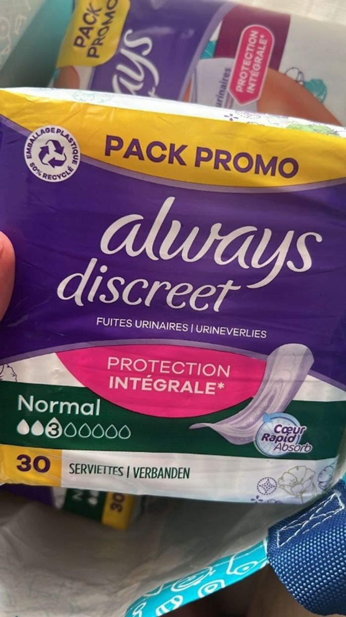 Bonjour je vends protection Always pas trop cher si vous voulez un ou deux ou même un loup on s'arrange avec le prix 3 a 10€ au choix