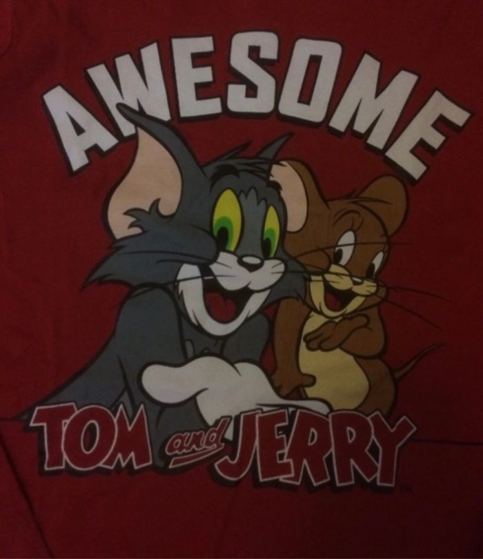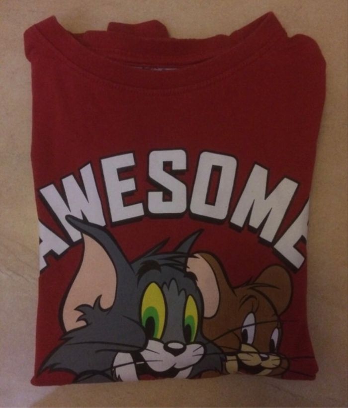 T-shirt, taille 8 ans mais je dirais taille petit, plutôt une taille 6-8 ans, motif Tom and Jerry.