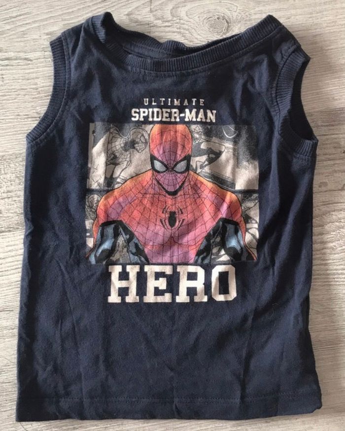 débardeur / tee shirt sans manches de la licence Ultimate Spider-man de Marvel-Disney taille 2 ans couleur bleu foncé occasion, bon état