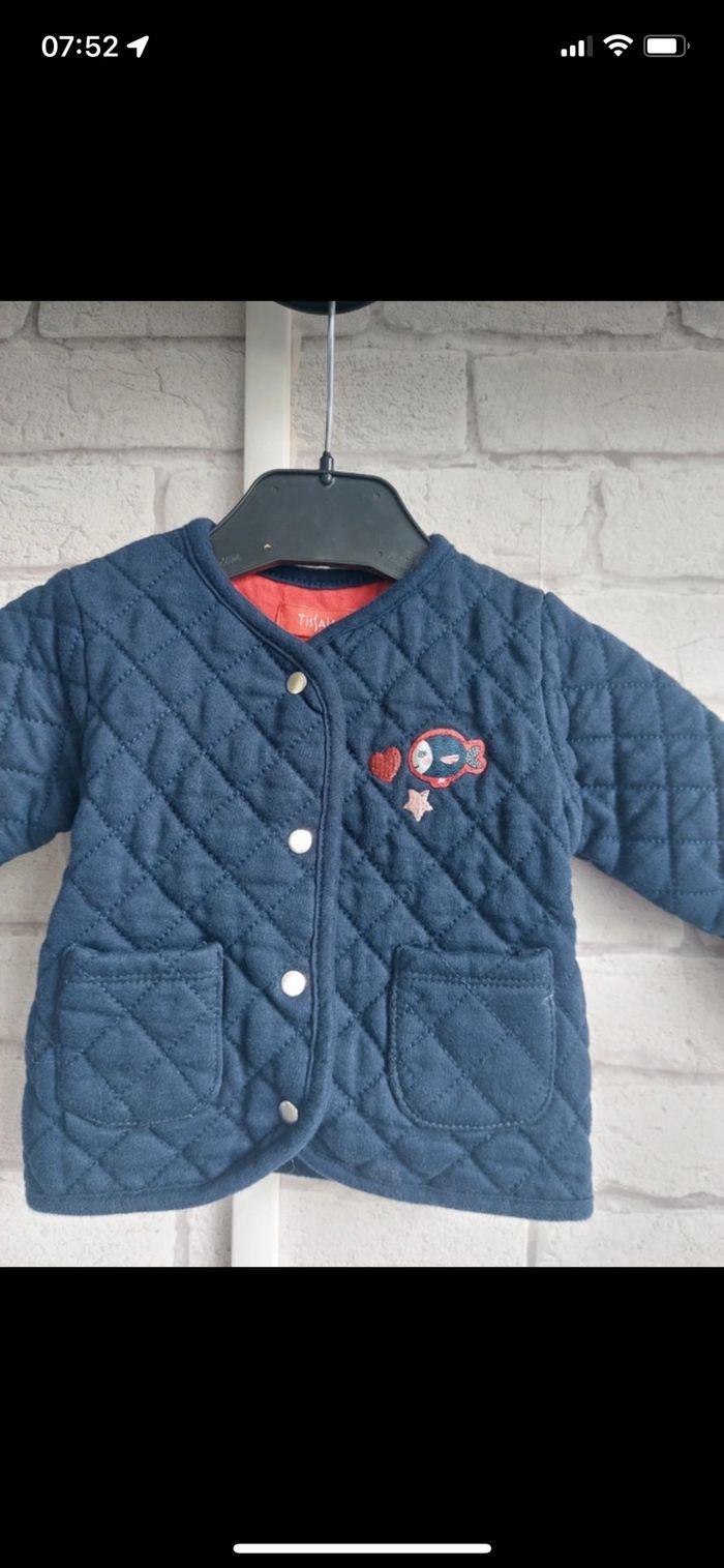 Gilet Tissaia taille 9 mois en très bon état. 60% coton 40% polyester.