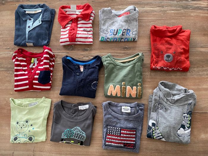 Lot de 11 tee shirts manches longues dont 2 col roulé. 6 mois Tout est en très bon état Orchestra, tape à l’œil, du pareil au même, tissaia. 20€ le lot soit environ 1,80€ l’unité