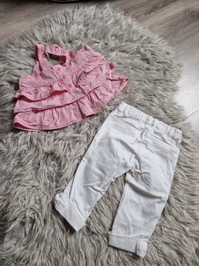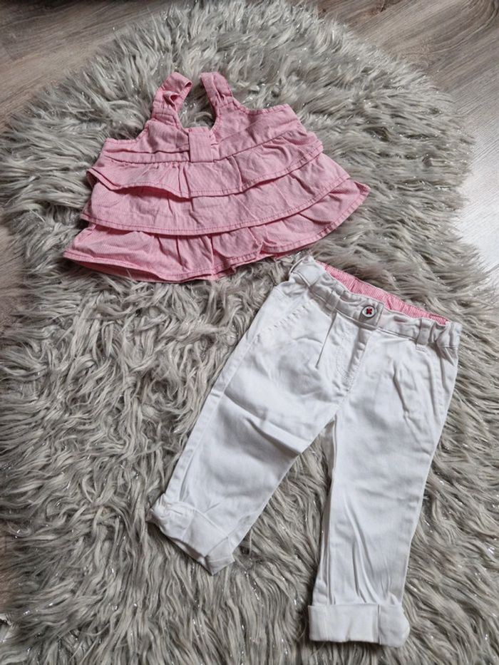 Ensemble pantacourt et débardeur à volant, comme neuf. Taille 9 mois. #taille9mois #tapealoeilfille