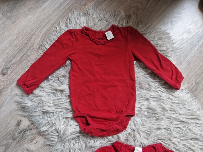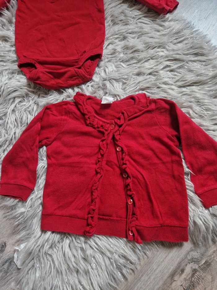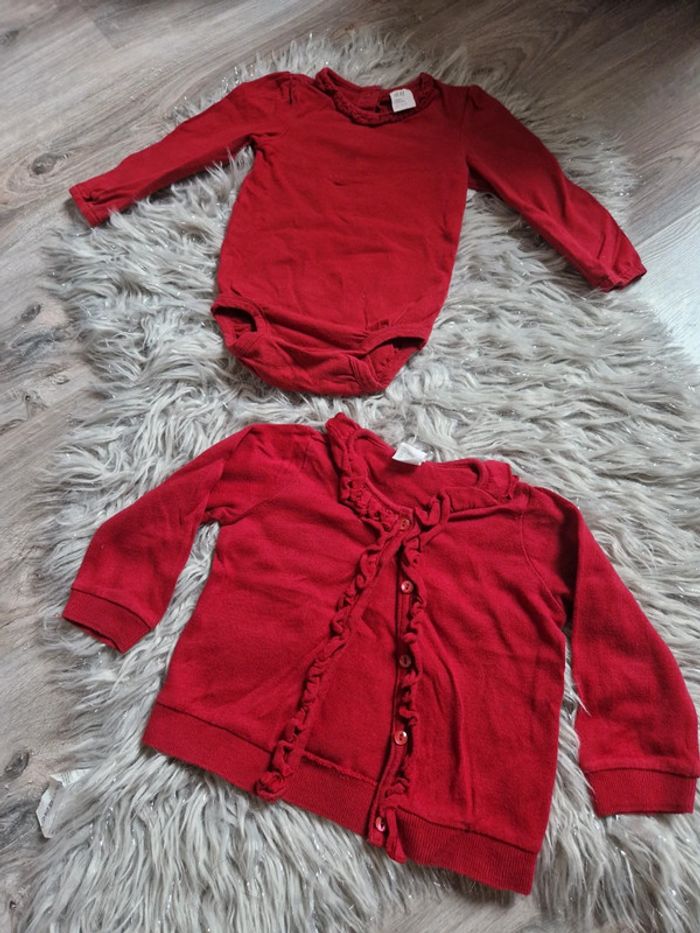 Ensemble body et gilet couleur bordeaux. En excellent état. Taille 9/12 mois.