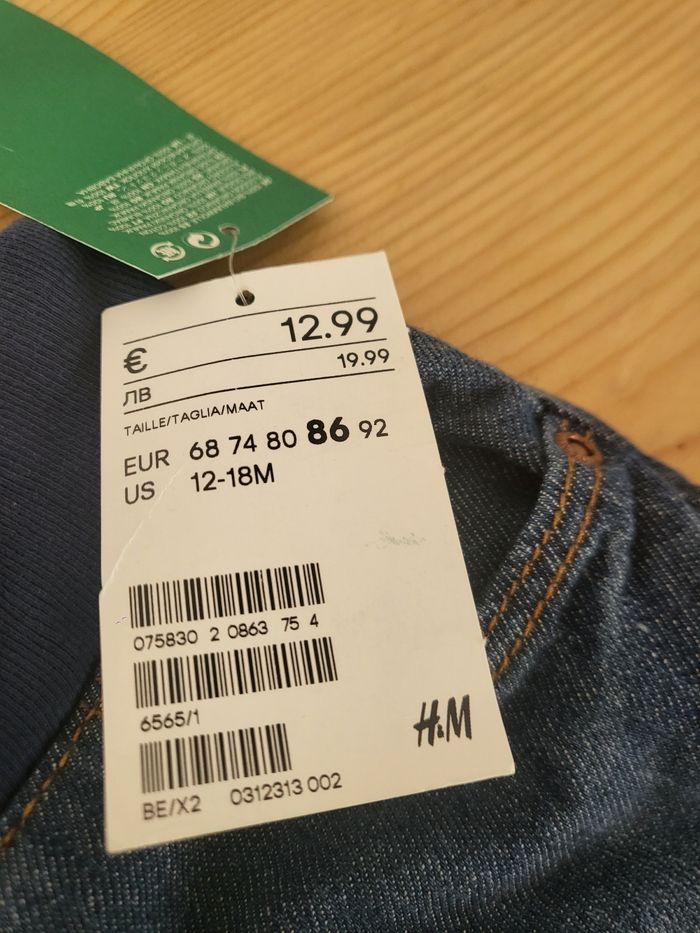 Jeans neuf avec étiquette h&m 12/18 mois