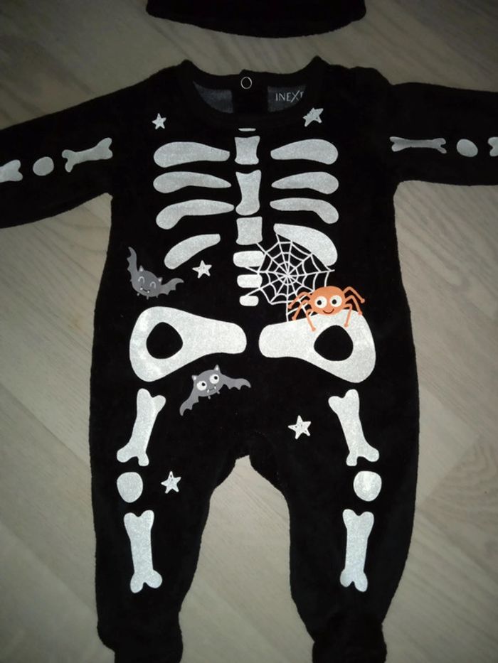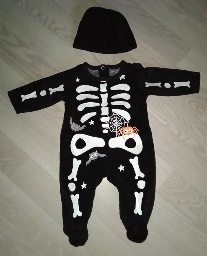 Pyjama velours noir motif squelette phosphorescent avec son bonnet Marque : In Extenso T. 56 cm (3 mois) NEUF jamais porté juste lavé #bebelle_78deguisement #bebelle_78garcon_3_mois