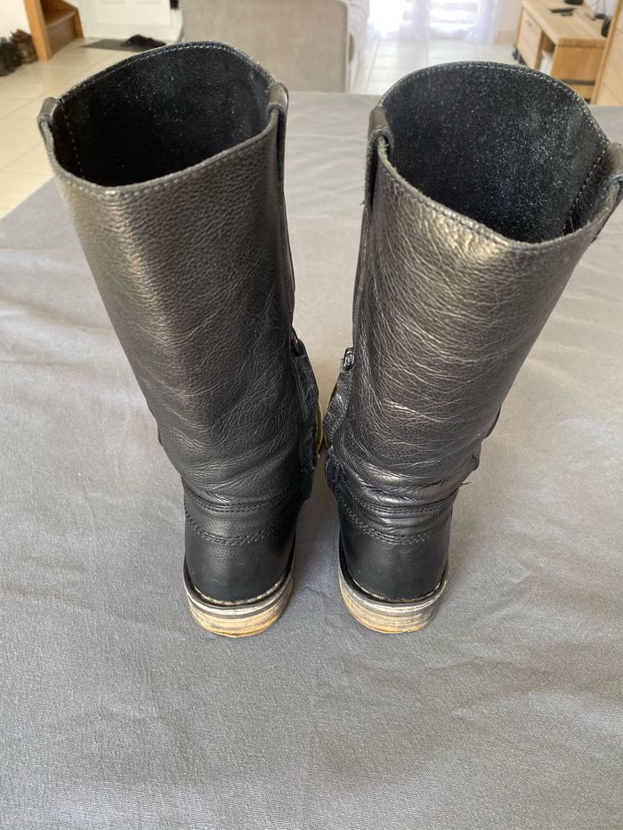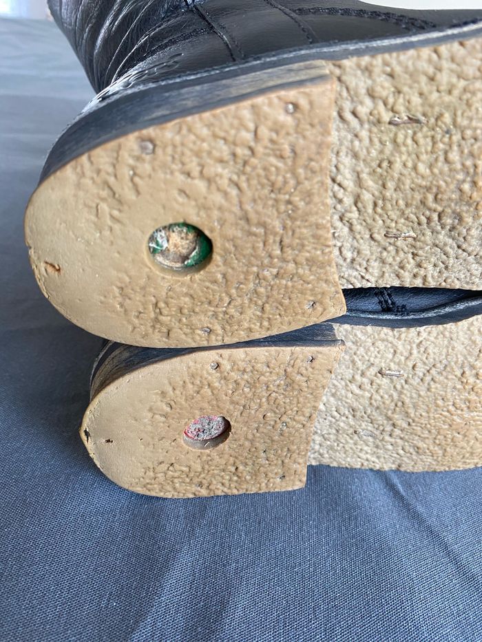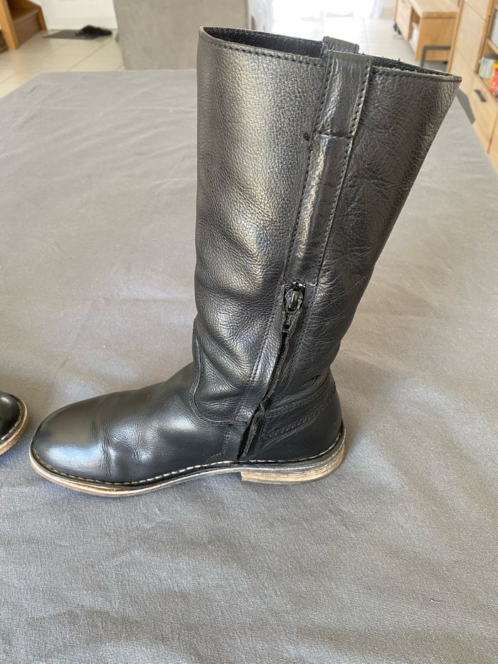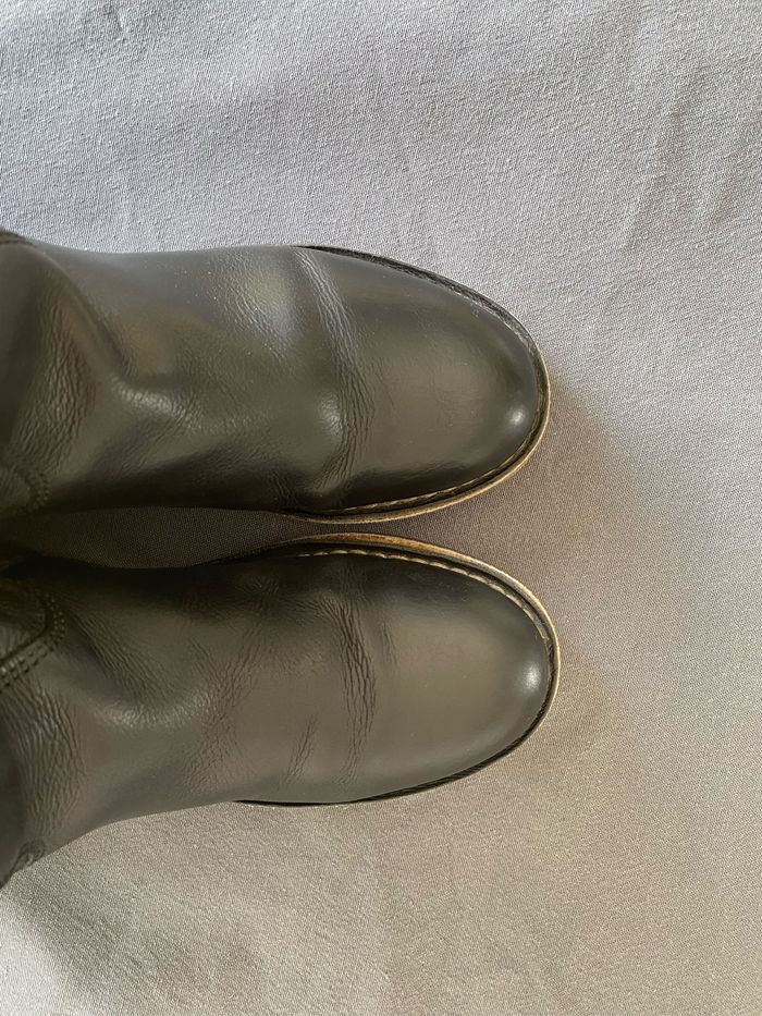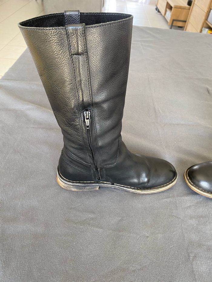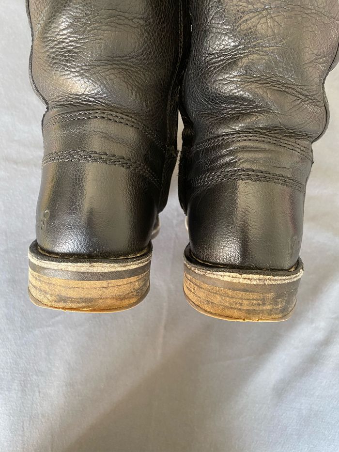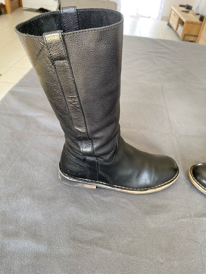 elles ont été un peu portées (1 hiver en alternance avec au moins 10 autres paires) mais sont toujours en bon état général. à noter que les semelles sont un peu usées à l’arrière et une toute petite griffure sur l’avant de la botte gauche non visible lorsqu’elles sont portées. voir photos. vendues sans la boîte d’origine.