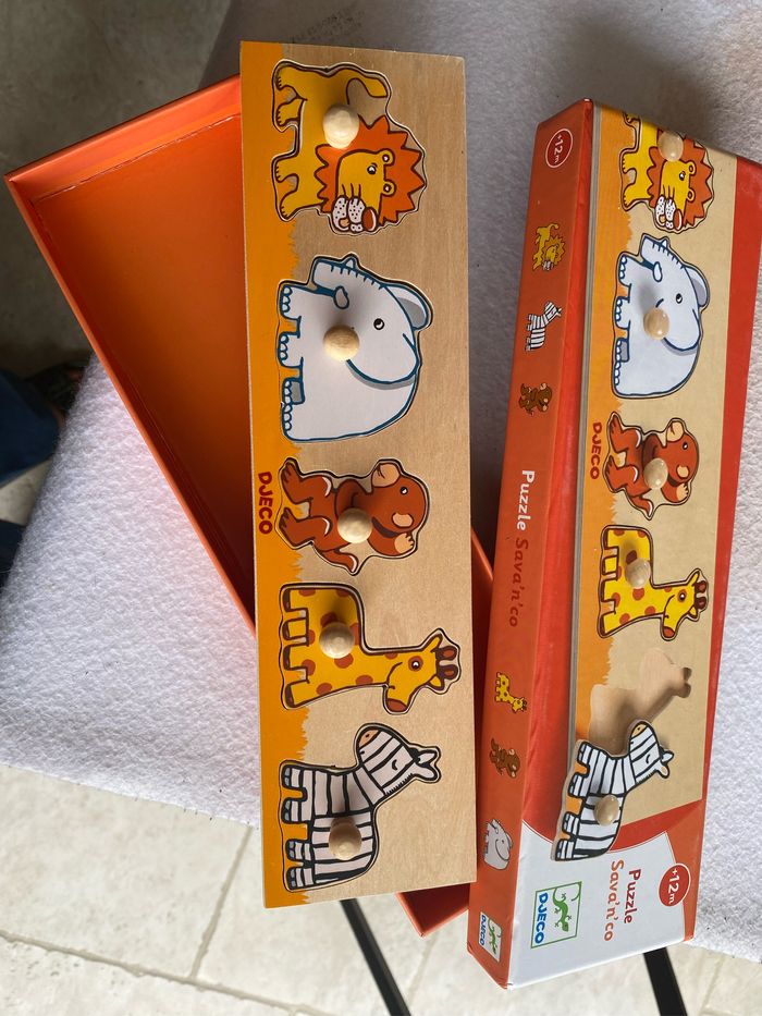 Puzzle 5 pièces Djeco 12 mois et +. Parfait état.