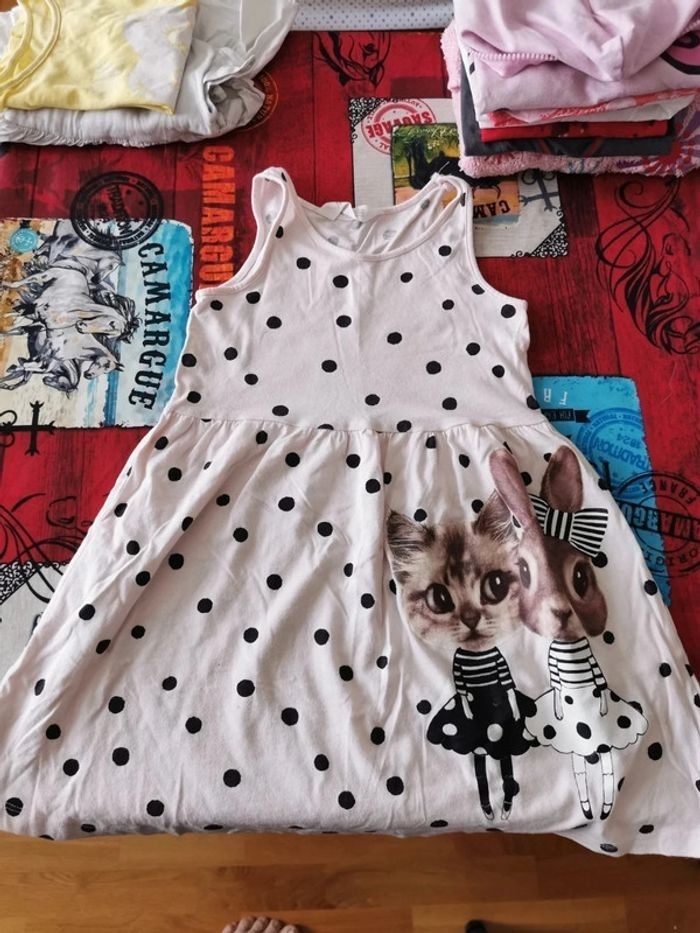 😻 Jolie robe longue sans manches à pois noir pour les petites filles aimants les chats et les lapins 😻 Marque H&M 😻 Taille 6 ans 😻 Bon état à part la couture qui commence à se défaire (voir photo)