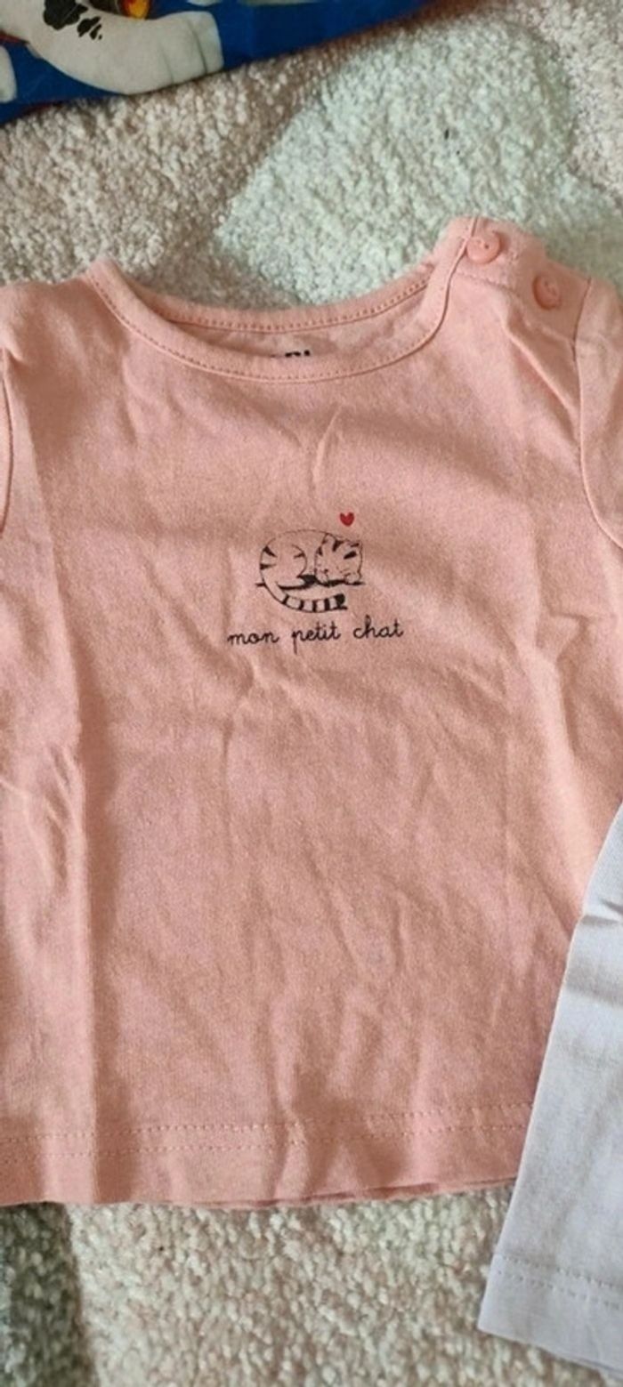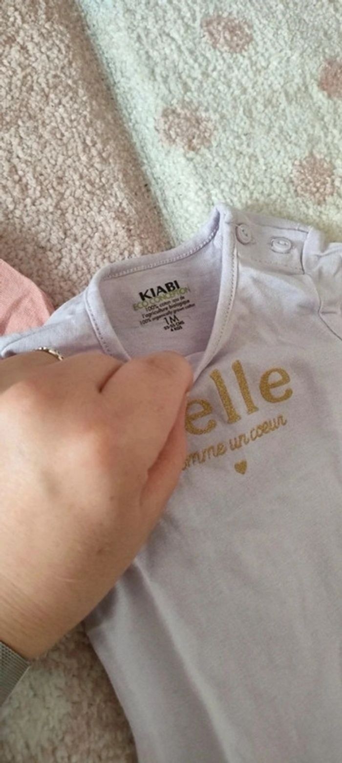 😻 Lot de 2 tee shirts bébé fille 😻 Manches longues 😻 Marque Kiabi 😻 Taille 1 mois 😻 Parfait état