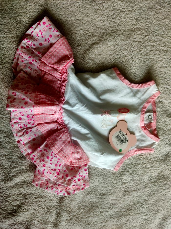 Robe manches courtes Taille : naissance / 1 mois Marque : Losan blanche et rose neuf avec étiquette