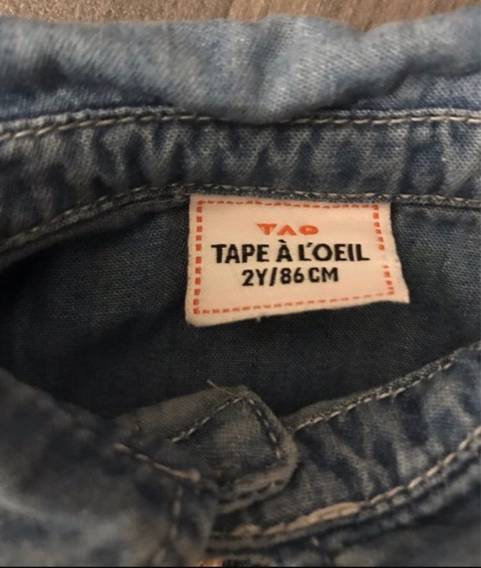 chemise à manches longues de la marque Tape à l’oeil taille 2 ans couleur bleu style jean légères traces d’utilisation occasion, bon état