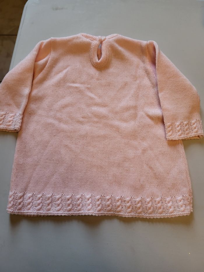 Robe rose manche longue , torsade sur tout le tour et sur le haut devant.