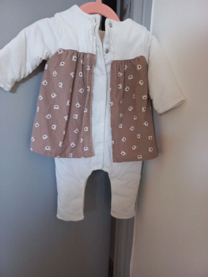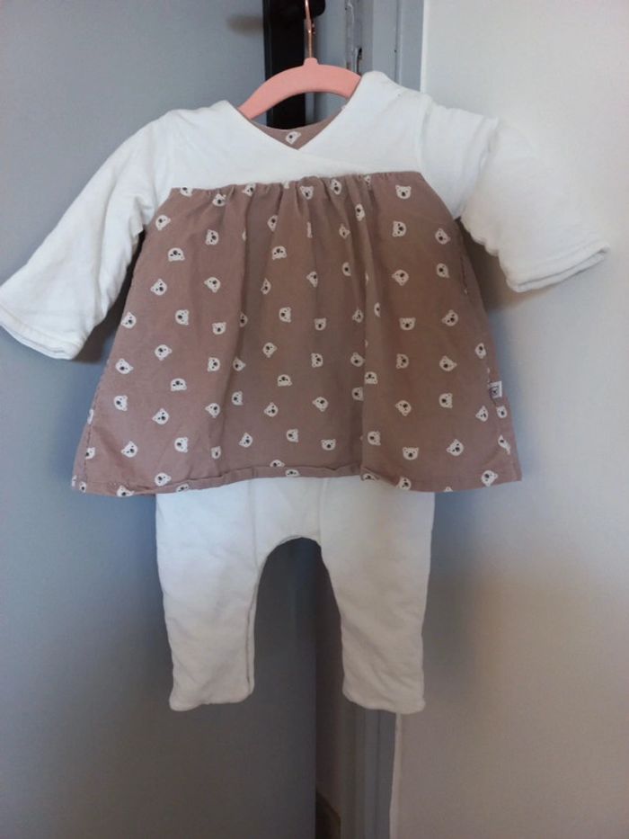 Ensemble robe molletonné idéal hiver Jolie motif côtelé avec des oursons Pression à l'arrière