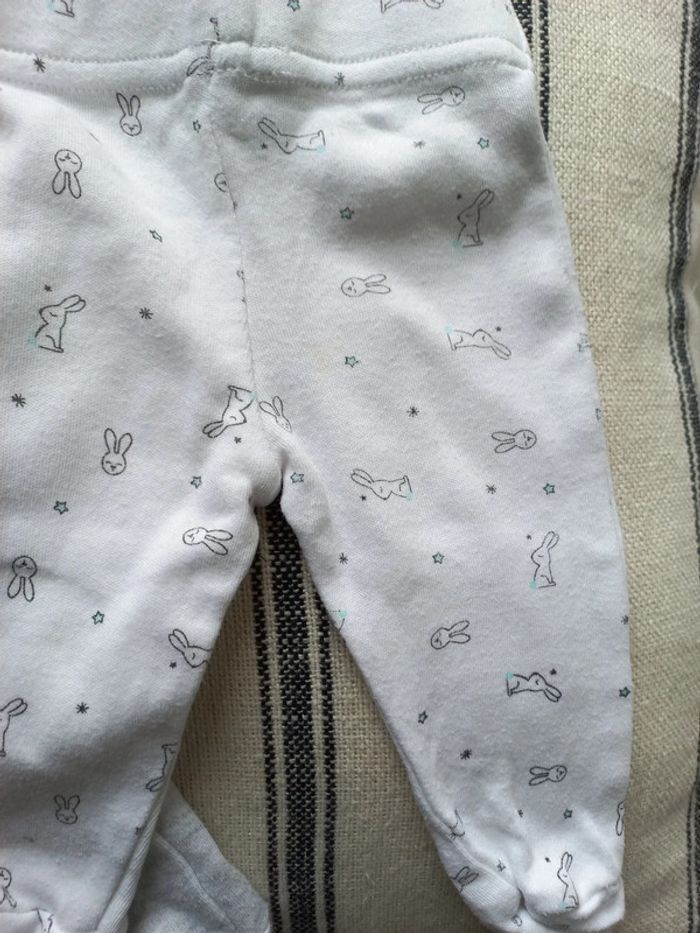 Pantalons type collant avec pied 1 mois 56 cm 1 tâche à l'arrière du blanc/lapin cf dernière photo